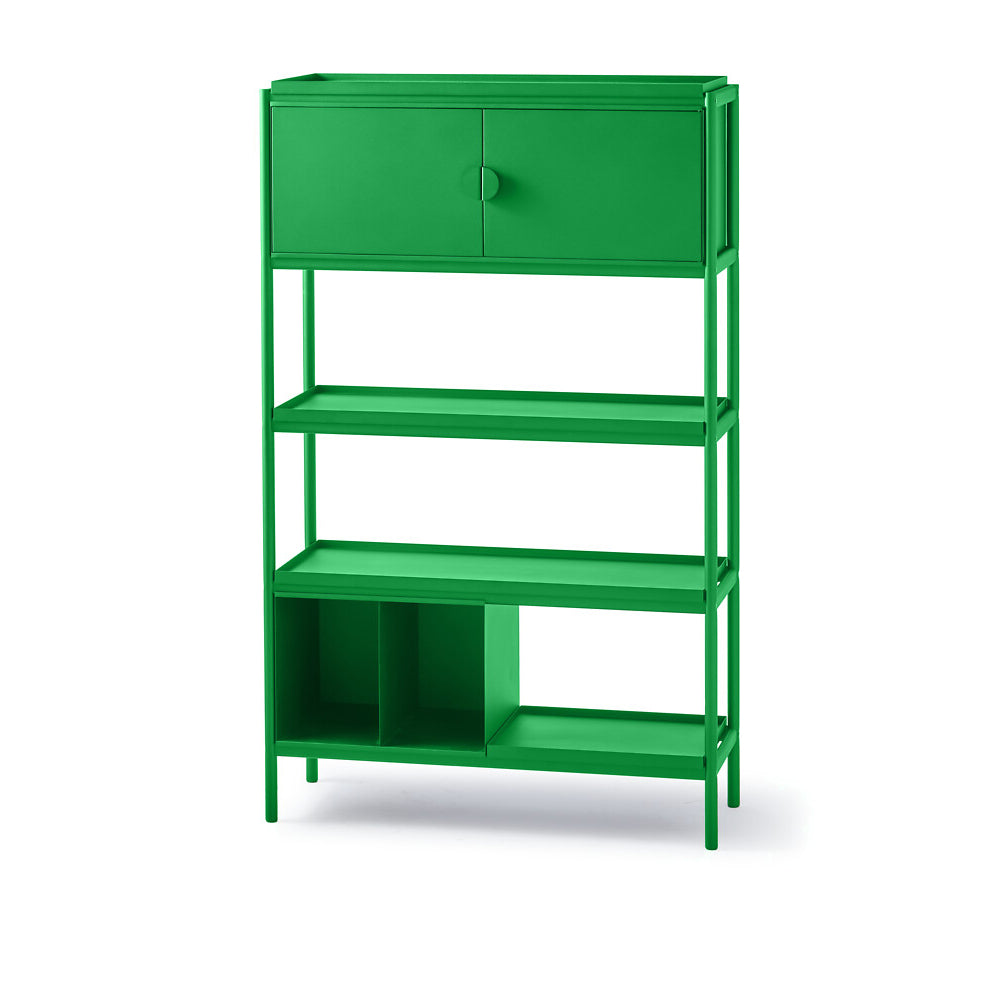 Playful yet practical, the Toss range of cabinets from Pols Potten introduces a bold pop colour to your space. Made from powder-coated metal, the wider variant of this cabinet features a series of shelves with two modular compartments at the bottom and a pair of doors at the top which open up to reveal further storage space. A stunning piece to display your treasures, the quirky nature of the Toss Cabinet brings a dynamic intensity to any setting and as it is available in three colours and two styles, there is sure to be something to suit your needs.