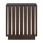 Crafted from rich, dark brown mango wood, its striking design alternates between slatted wood and mirrored strips, adding a modern touch to its classic form. The sideboard features two doors opening to reveal shelved storage, keeping your space neat and tidy, while the top serves as the perfect canvas for your decorative choices.