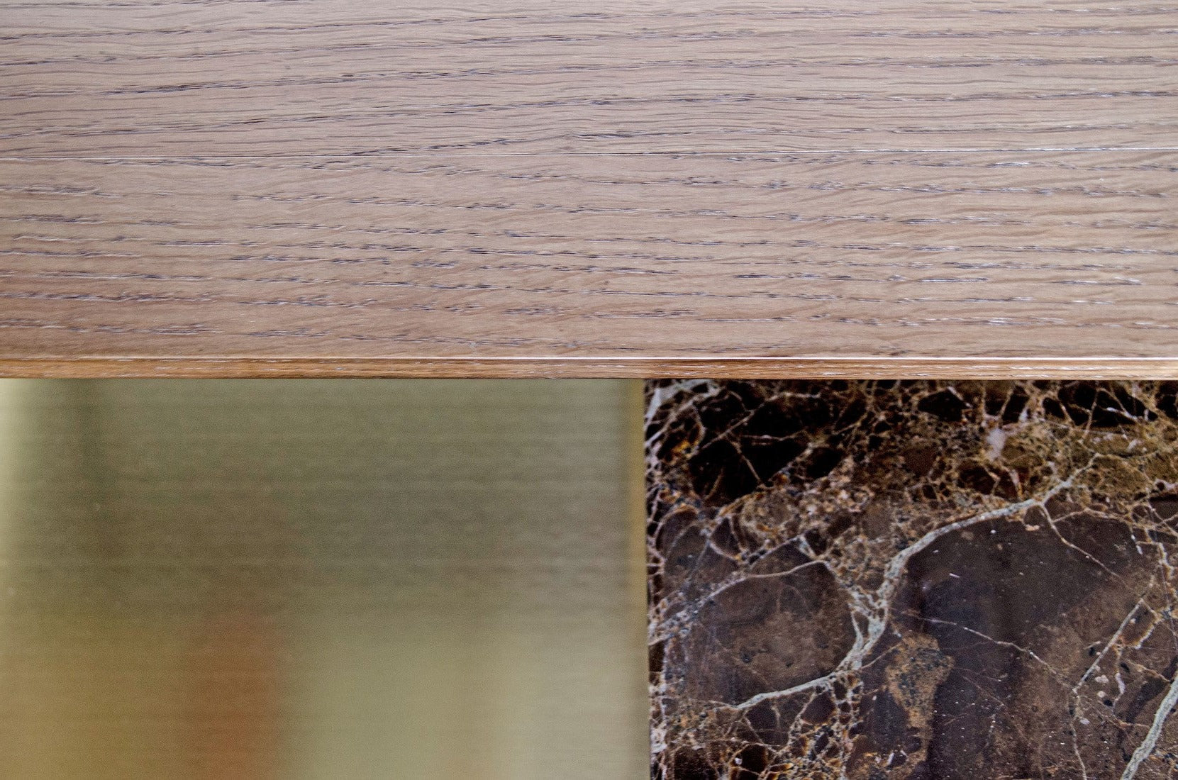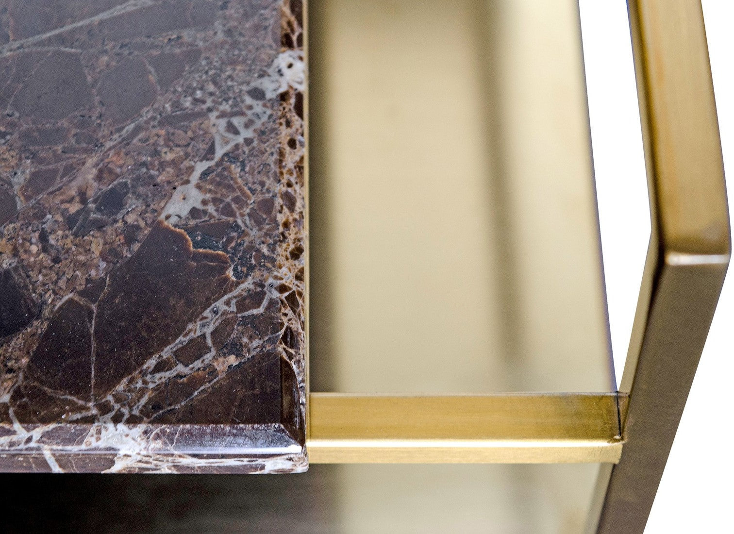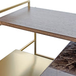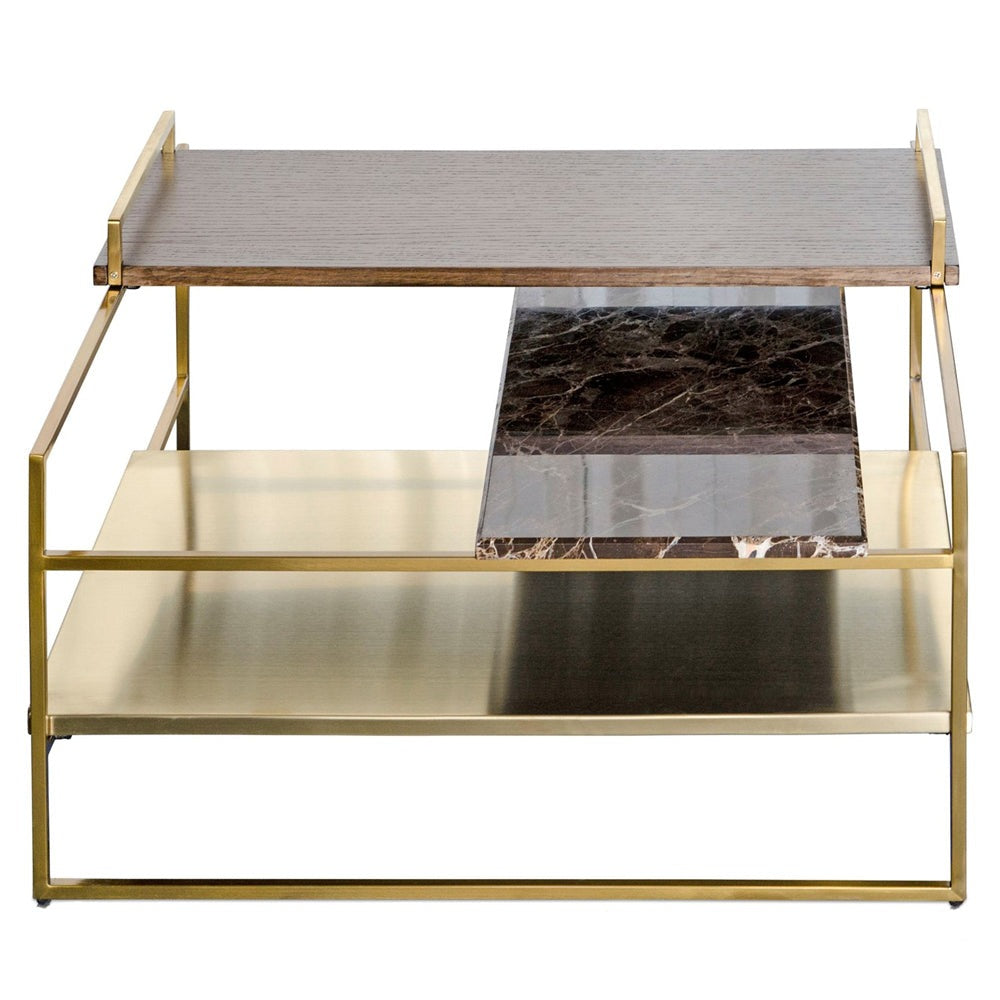 The architectural design of the Arris Coffee Table makes clever use of different levels, heights, and materials to ensure it stands out as the ultimate statement piece in your space. The bottom level and the frame itself are made from stainless steel which has been treated to an opulent brushed gold finish. The middle and top levels are a respective brown marble and oak veneer which come together for a radiant warmth. The result is spectacular – this table is as much of a work of art as a functional coffee table. Pride of place in your main seating area, the Arris Coffee Table will be the highlight of your space.