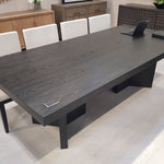 Really give your guests something to talk about at your next dinner party by installing the beautiful and contemporary designed Berkeley Designs Sorrento Dining Table in your home. Elegant and aesthetically pleasing, as well as practical, this sturdy large table crafted from textured brown oak, can comfortably seat up to 10 diners. The chunky and robust rectangular table top rests on legs which are a formation of three smaller pieces of thick wood, all at balancing angles. It makes for an unusual, quirky and rather glamorous look.