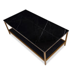 The perfect style for any space, the Max Coffee Table makes a bold statement. The table top is formed from natural marble that is fabulously smooth and sleek. With a main black colouring it has veining of white throughout. Each one is completely unique and different thanks to its natural formation. The under shelf is handcrafted from black ash veneer that gives an exotic air. Together with the rustic matt gold frame it gives the perfect finish. A fabulous piece to join with your favourite seating space. It will bring plenty of gorgeous style and delightful looks to your home.