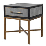 Take your room to another level with the Dellora Side Table. The internal space is surprisingly roomy for plenty of space to store things. Edged with black oak wood strips and iron metal accents, it is truly handsome. The textured faux shagreen gives an impressive lift to the overall look. Imagine placing this in your home, for a stunning style. The ultimate piece for contemporary and classic style, that blends perfectly with your interior décor. Sleek design and superb elegance dominate; make this range your favourite. Bursting with style and substance, this piece makes a wonderful addition to the centre of your home.