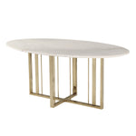 If your dining room lacks style, this can make mealtimes dull and drab. Bring a strong dose of glamour and stylish design with the Liang & Eimil Fenty Dining Table. A superb look, it will completely transform your space. Perfect elegance comes directly from the sleek oval table top. The smooth white marble features natural flecks of colour that add a superior style. Matched with the brass legs it is truly delightful. Improve your dining room with a delightful ease.