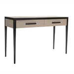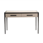 A classic that harks back to the modern era of pencil skirts and sharp ties. With a glint of fifties style and all the glamour, the Liza Console Table brings a new wave of elegant grace. The frame and legs are wenge coloured for a beautifully offset look against the caramel top. Created from leather look upholstery it offers a lovely texture to enjoy. The two integrated drawers bring a little privacy to proceedings or as a useful space to blend with your table top. A table for use anywhere across your home or office space it will provide a serene calm.