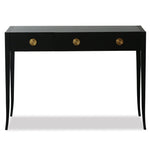 Bring a showstopper to the heart of your space with the Liang & Eimil Orly Console Table. Its shaping is superbly elegant and stands out from the first moment. It is sleek and bursting with contemporary features. From the bold, black quartered oak veneer bringing strength and dimension, to the polished brass handles with their gleam. This modern console suits any room of your home or business, but why not brighten an unloved area. From the hallway to the dining room, it has so much potential to make a positive impression. Add to this ample storage space in the triple drawers and its potential is easy to see.