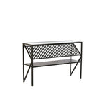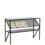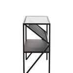 Tasteful design paired with flawless execution; the Ezra Console Table allows you to make the most out of your space. Made primarily from matt black metal, this sturdy console table features a spacious shelf and a smooth glass top, both of which provide plenty of space for ornaments, vases, and photographs. Beneath the glass top is a sloping metal rack which is perfect for magazines and small books. In your living room or hallway, the Ezra Console Table stands out as an exceptional choice that allows you to display your treasures in style.