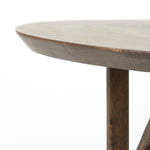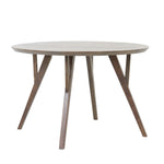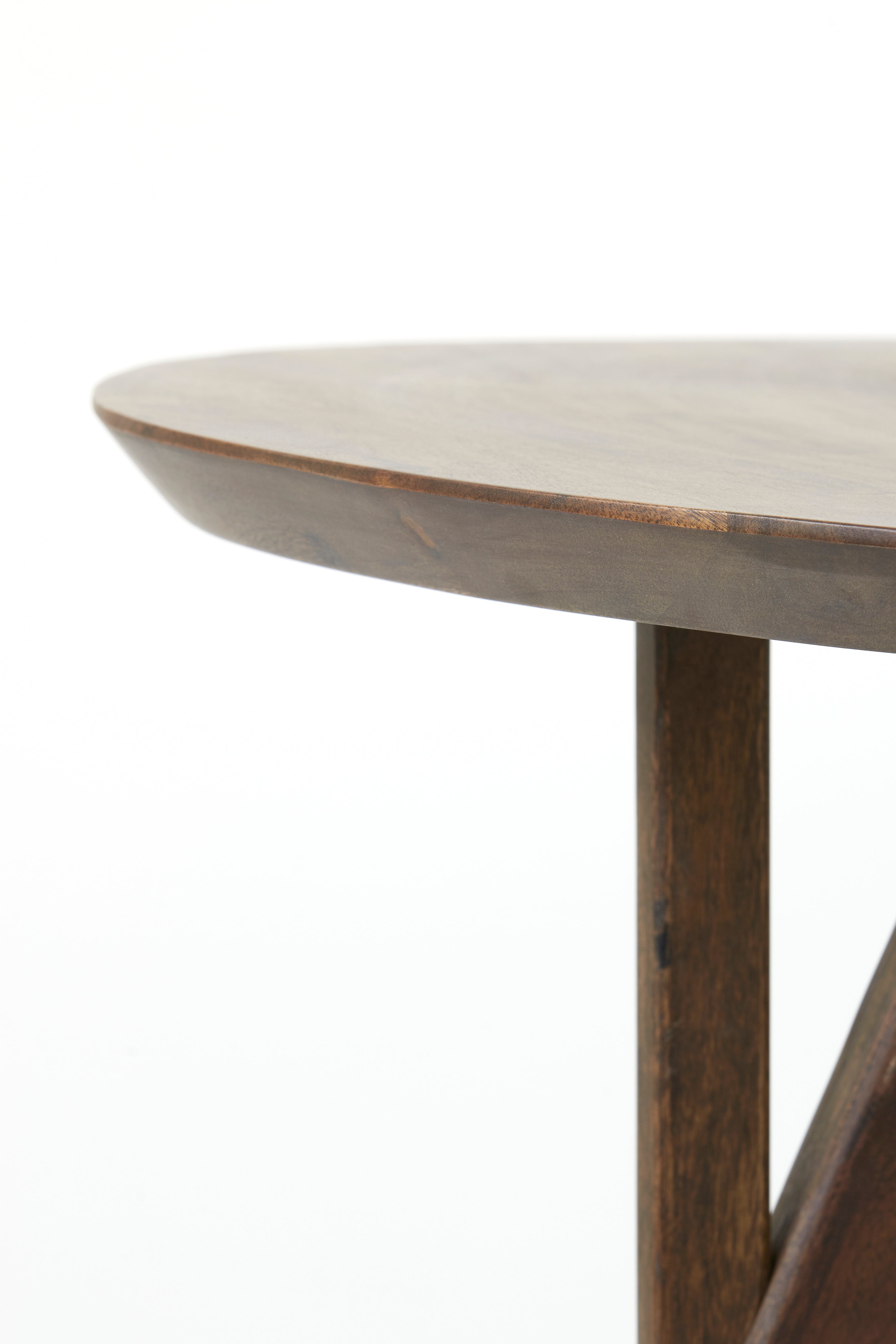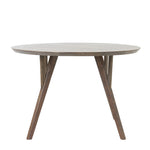 Crafted from rich brown acacia wood, its rounded silhouette stands as a testament to superior design, effortlessly highlighted by its natural grain and graceful tapered legs. Envision it paired with vibrant chairs, creating a bold contrast destined to become the conversation's centrepiece. Alternatively, for a more harmonious ambience, opt for understated tones that complement its inherent grace.