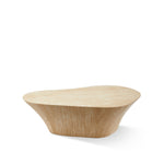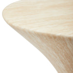 Made from resin but imbued with the refined appearance of travertine marble, this table effortlessly blends modern craftsmanship with traditional aesthetics. Its elegant organically-shaped top is complemented by an equally intriguing, obscure body, adding layers of visual interest to the piece. Not just a conversation starter, it also serves as a functional table perfect for social gatherings.