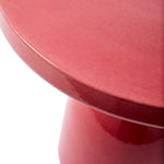 Crafted from bold red-pink ceramic, its sculptural form is finished with a striking reactive glaze that beautifully catches the light. The rounded top and smooth curves reflect a modern, geometric sensibility, making it a standout piece in both minimalist and eclectic spaces.