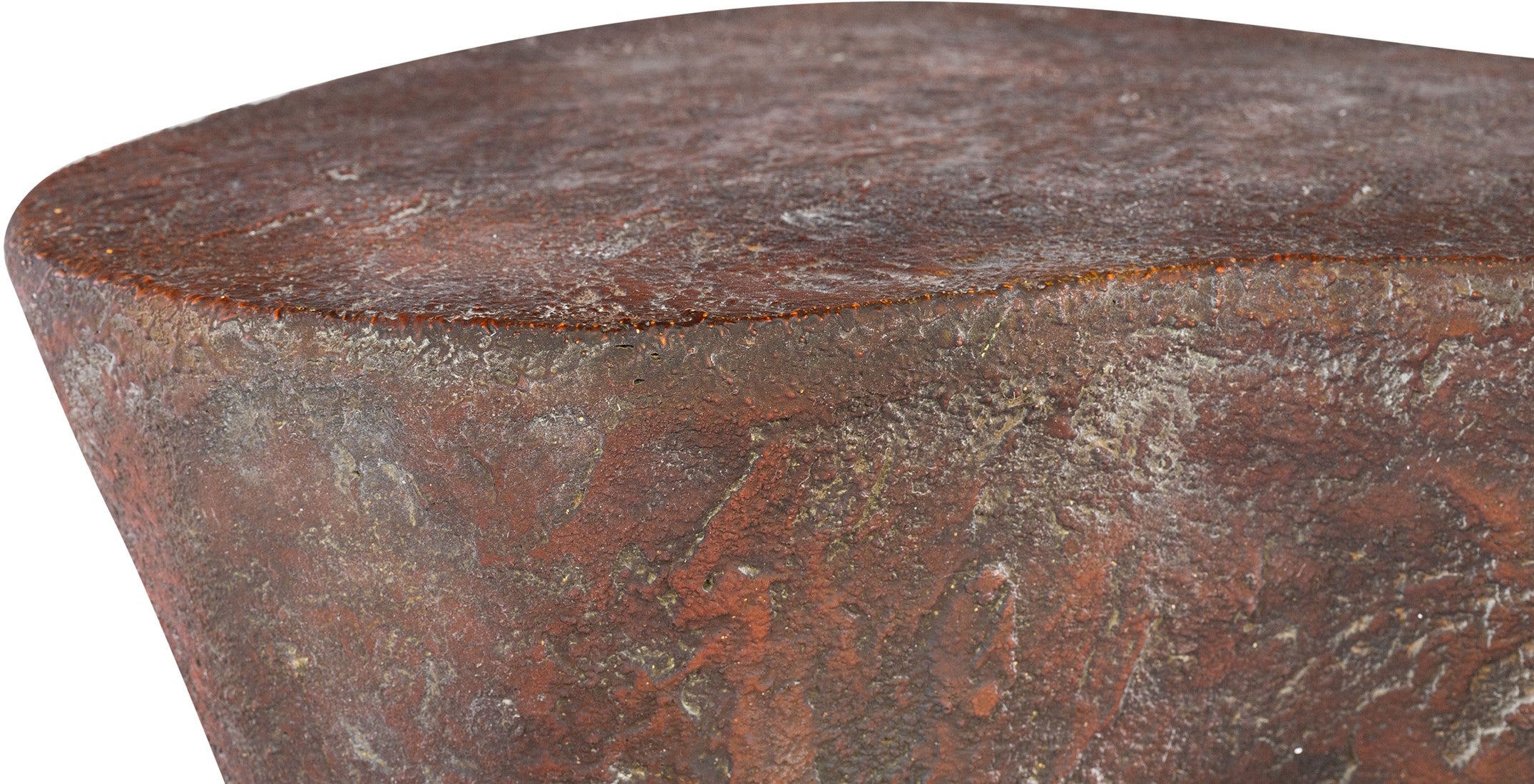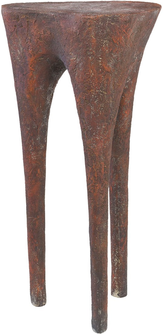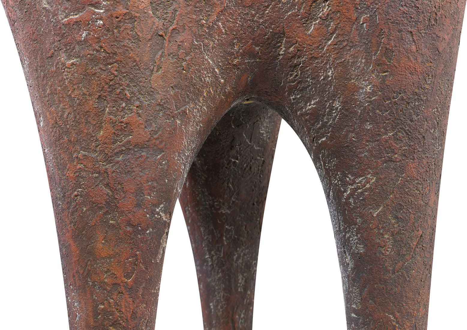 Meticulously crafted from durable glass-reinforced polyester, this table showcases an organically curved top that exudes fluidity and grace. Supported by three elegantly tapered legs, it embodies minimalist charm with a hint of intrigue. Its compact design is perfect for tight corners or smaller spaces, while the robust material promises enduring functionality. The distressed copper finish lends a touch of rugged appeal, effortlessly blending with various décor styles.