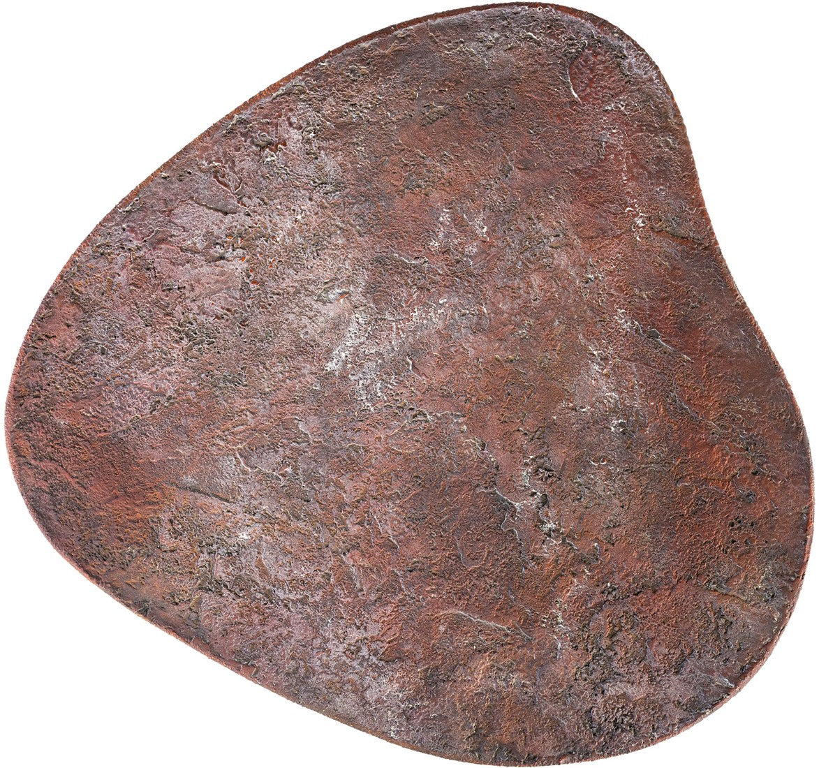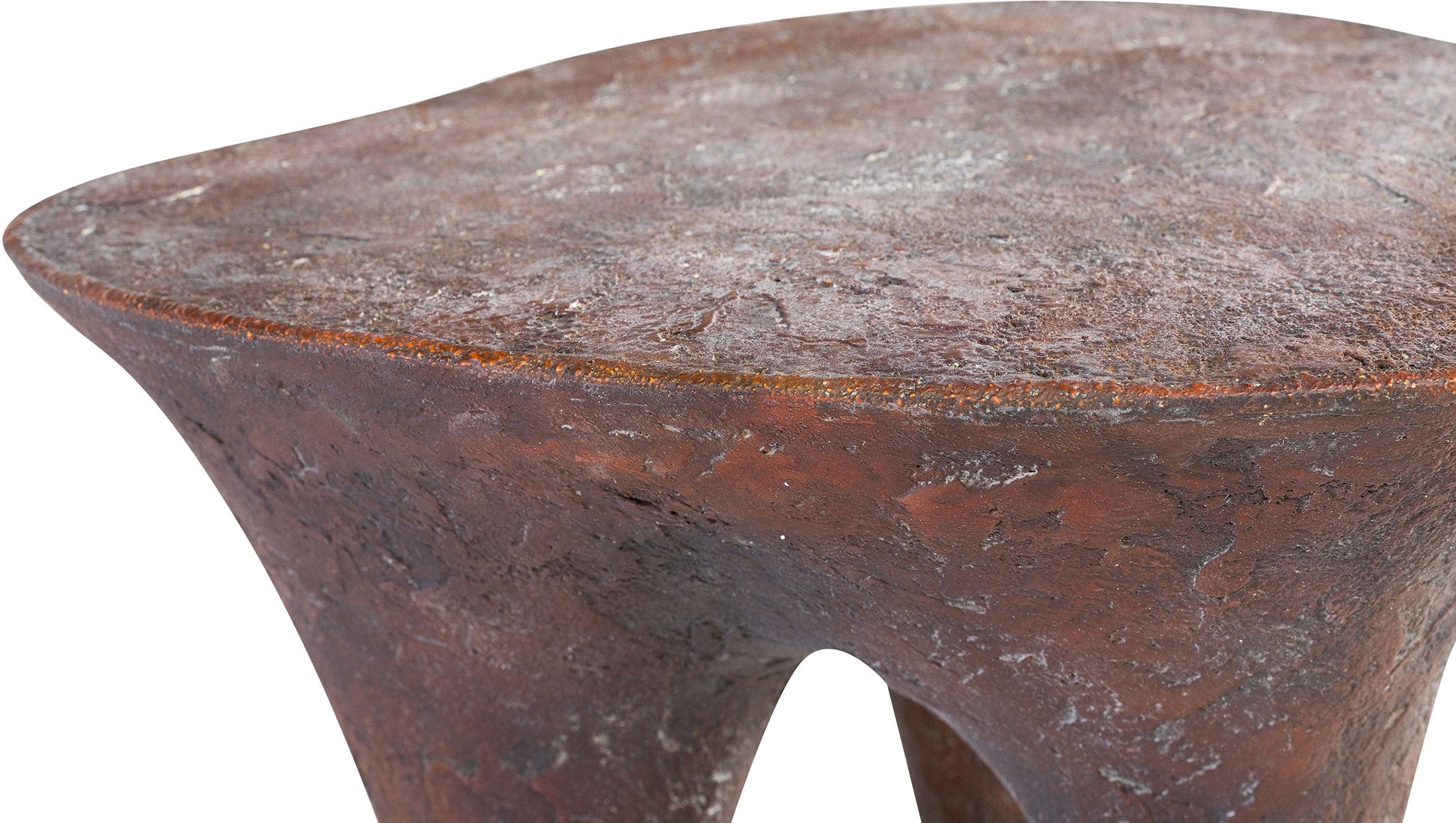 Meticulously crafted from durable glass-reinforced polyester, this table showcases an organically curved top that exudes fluidity and grace. Supported by three elegantly tapered legs, it embodies minimalist charm with a hint of intrigue. Its compact design is perfect for tight corners or smaller spaces, while the robust material promises enduring functionality. The distressed copper finish lends a touch of rugged appeal, effortlessly blending with various décor styles.