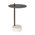 Melding luxury with modernity, this masterpiece showcases a lavish white marble round base that anchors a sleek, metallic body. Rising to a textured metal tabletop, it adds a touch of sophistication to any room. Its distinctive design sets it apart, making it a functional but stylish statement piece.