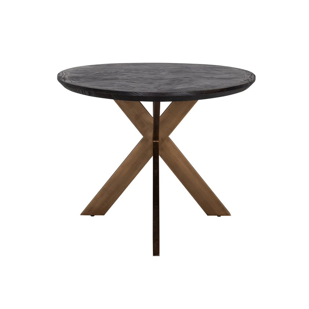 Bold and glamorous, the Blackbone Dining Table makes a lasting impression on your space. With an oval tabletop made from beautifully rich oak veneer, it is stylishly sleek – something accentuated by an elegant, x-shaped metal frame. This has been treated to an opulent brass finish, providing a stunning contrast to the dark colour of the wood. Brimming with poise, refinement and timeless class, the Blackbone Dining Table is the perfect addition to any design scheme. Introduce it as the focus of your dining space for a striking example of unrivalled luxury.