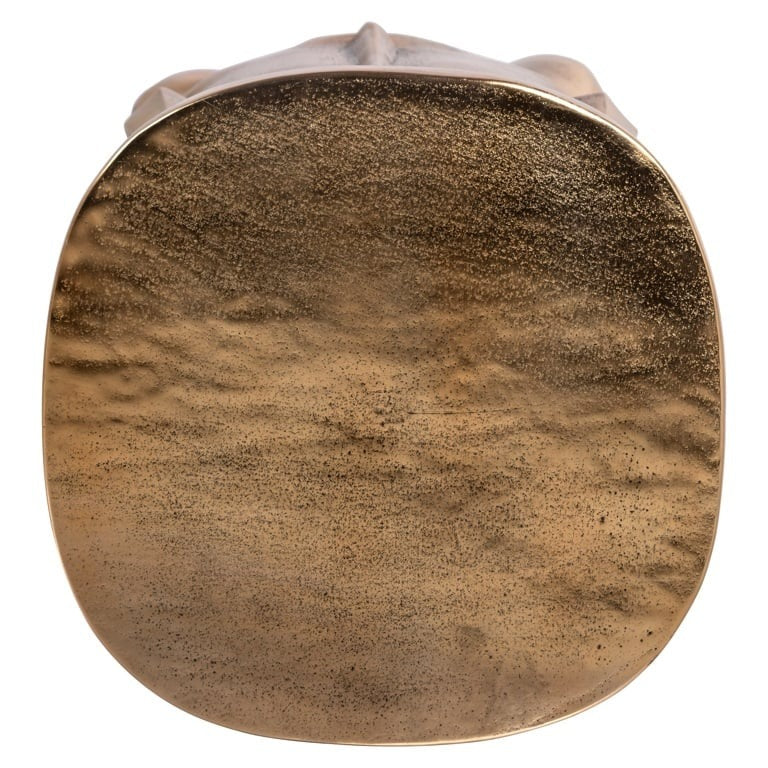 Crafted from aluminium with an antique brass finish, it shimmers with a radiant glow, though its most striking feature is its myriad of facial features which add a quirky and unique character to any room.