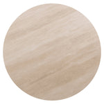 Supported by an eye-catching trio of cylindrical legs crafted from oak veneer and recycled wood, it offers both strength and sustainability. Above, a smooth travertine ceramic top captures the natural beauty of stone while providing exceptional durability, creating a refined surface ideal for both everyday dining and special occasions. The round shape promotes easy conversation, while the neutral palette complements a wide range of interior styles.