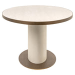 Showcasing a beautifully balanced design, this table pairs a sleek ceramic top with a textured column base, all set on a smooth warm metal disc for stability and contrast. The mix of refined materials adds depth and sophistication, while the sculptural silhouette lends a contemporary edge. Elegant yet impactful, it works equally well in open-plan settings or dedicated dining areas.