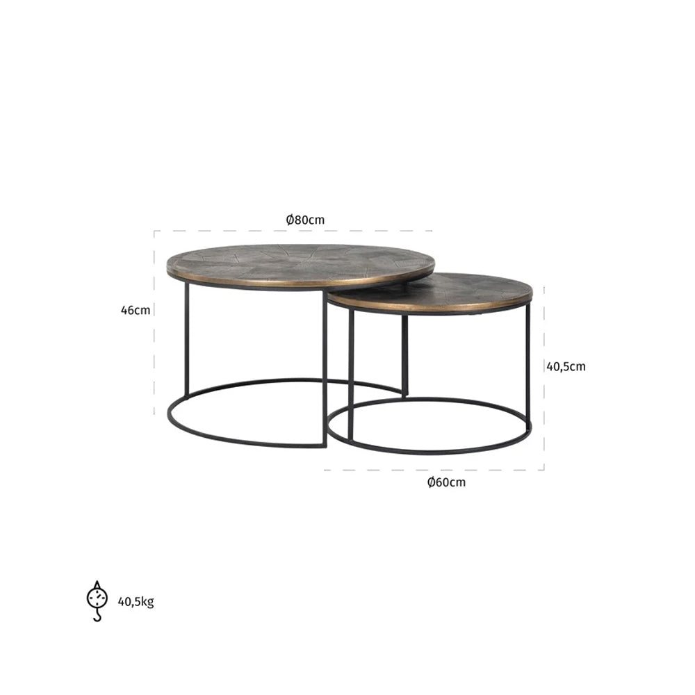 The perfect space-saving solution for smaller interiors, the set of two Tulum Coffee Tables from Richmond Interiors brings style and convenience in equal measures. Designed to be nested together, each table consists of a sleek iron frame and a brushed gold aluminium top with etched detail. If you have more space to play with, they can be used together to create a larger surface or entirely separately so versatility is assured. Wherever and however you use them, the Tulum Coffee Tables will enrich your space with an opulent warmth.