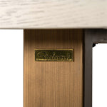 The table's minimalist design is underscored by angular iron legs which have been finished in a radiant brass to exude contemporary elegance. Above this, a rectangular Verona Grey oak veneer top steals the show with its subtle sense style.
