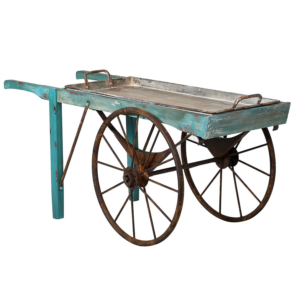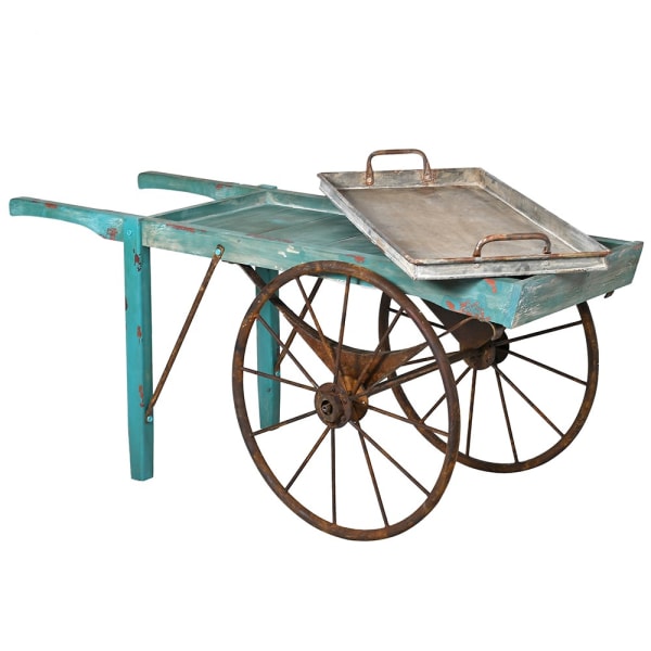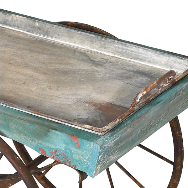 A gorgeously styled unit for your home, the Kuaza Cart is a quirky choice. As a coffee table, bookshelf unit or drinks trolley, it is an engaging option. Distressed blue paint is used alongside rusted iron wheels for an authentic aged look. This has an impressive elegance that is unique and will be a signature style for your contemporary space.