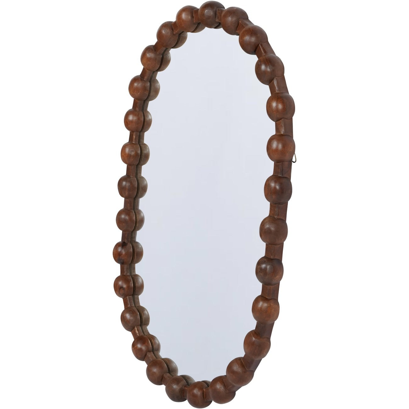 Crafted from rich mango wood, this beautifully designed mirror features a distinctive bobble frame, adding texture and charm to any space. Its elegant oval shape and deep, natural wood tones make it a versatile piece, perfect for both traditional and contemporary interiors.