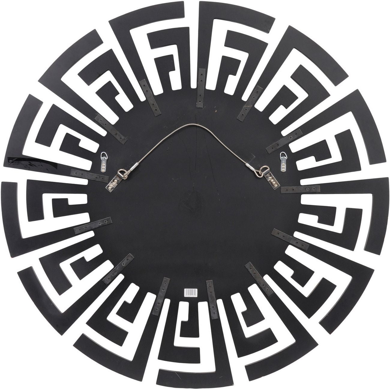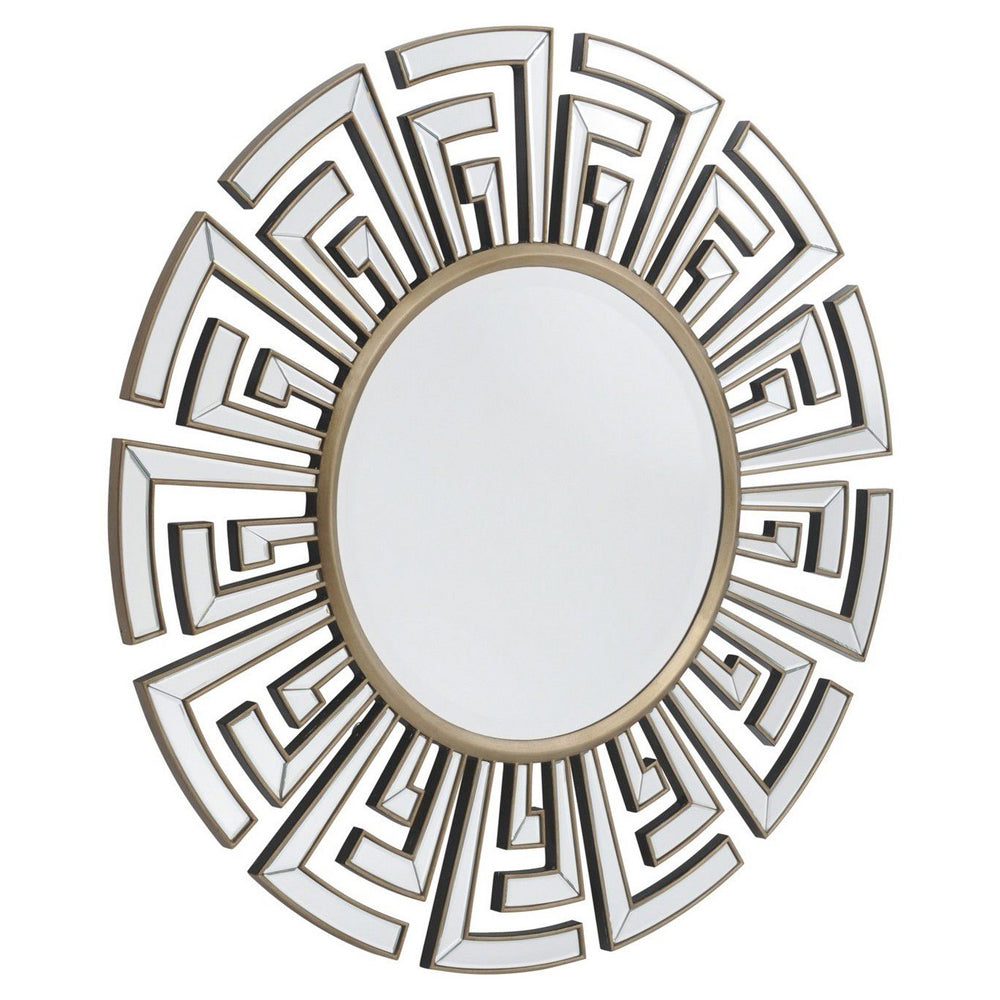 This striking mirror features a central circular design, surrounded by a bold geometric motif crafted from intricate mirrored pieces. Each element is beautifully accentuated with bevelled edges, all set into a frame of antique bronze resin that enhances its vintage appeal.