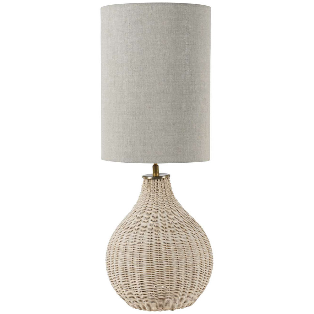 Crafted with a rattan base, its soft, organic silhouette brings warmth and texture to any space. It features a soft natural linen shade, exuding a serene elegance that makes it a versatile addition to coastal, bohemian, or modern rustic interiors.