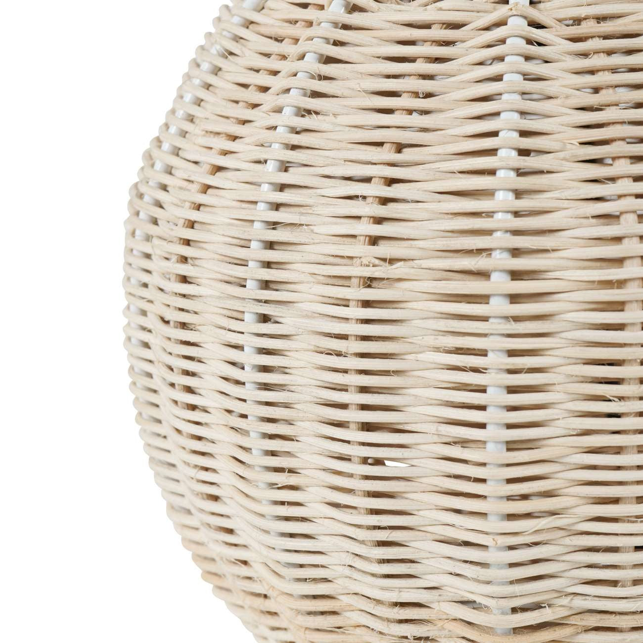 Crafted with a rattan base, its soft, organic silhouette brings warmth and texture to any space. It features a soft natural linen shade, exuding a serene elegance that makes it a versatile addition to coastal, bohemian, or modern rustic interiors.