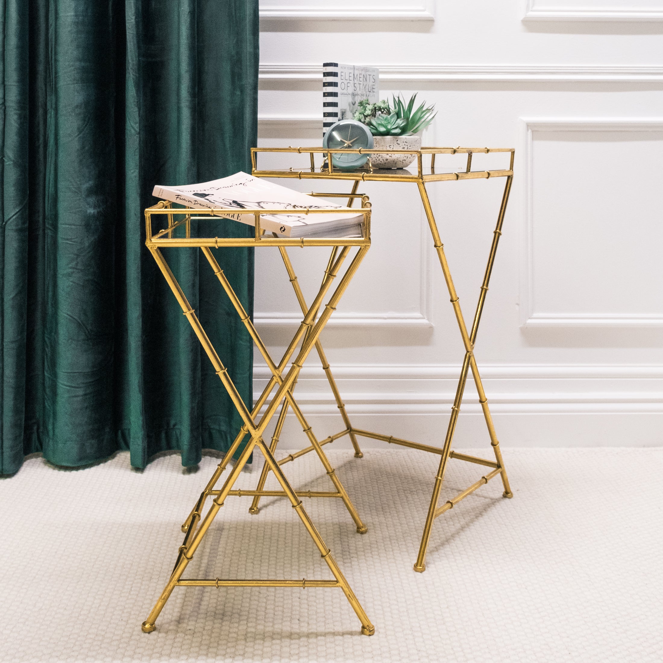 Shangri-La Set of 2 Gold Bamboo Side Tables