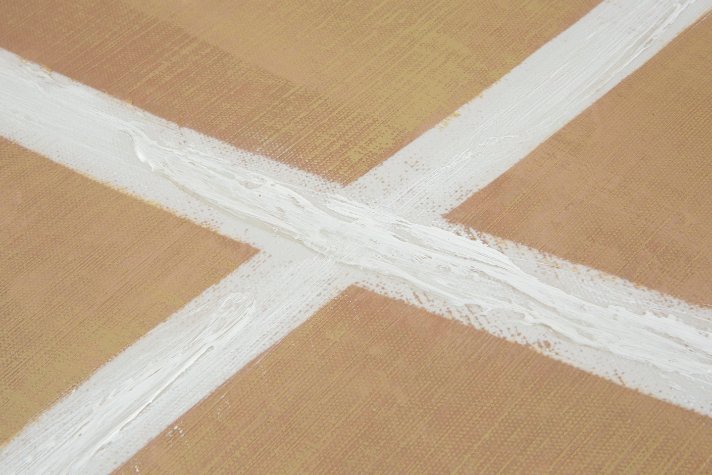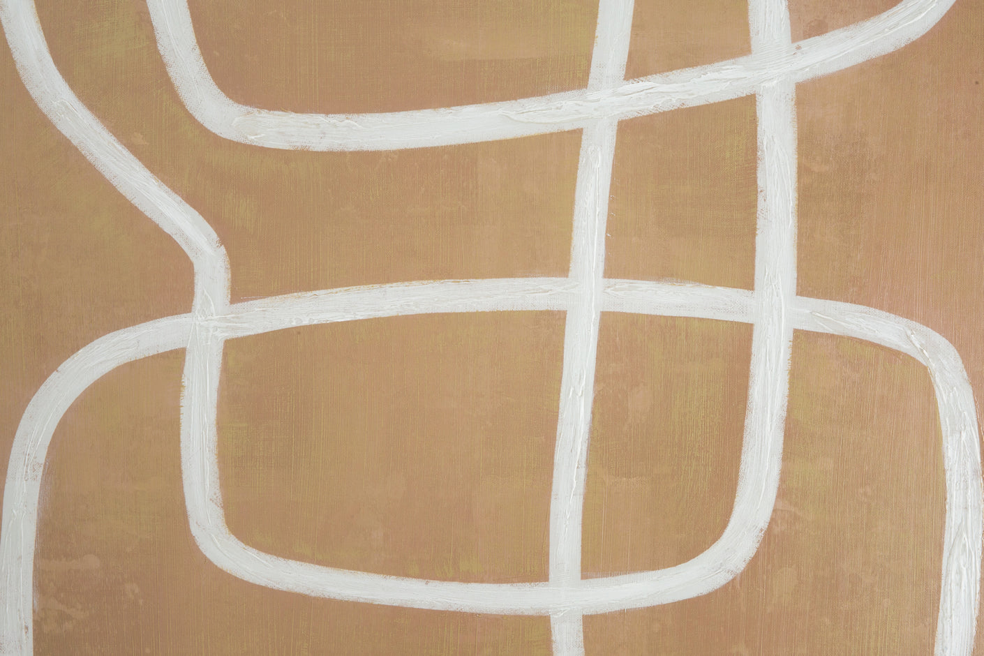 Hand-finished with precision, this piece encapsulates the essence of modern artistry with bold white brushstrokes that contrast beautifully against a rich brown canvas. Each print carries with it a touch of bespoke distinction, while its geometric flair and understated elegance make it a versatile addition to various settings.