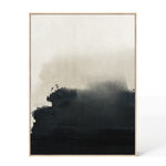 Framed in natural bamboo for a warm, organic touch, this striking piece features an inky, atmospheric composition that blends deep charcoal tones into soft neutrals. The subtle gradient creates a sense of movement and depth, bringing calm intensity to any space.