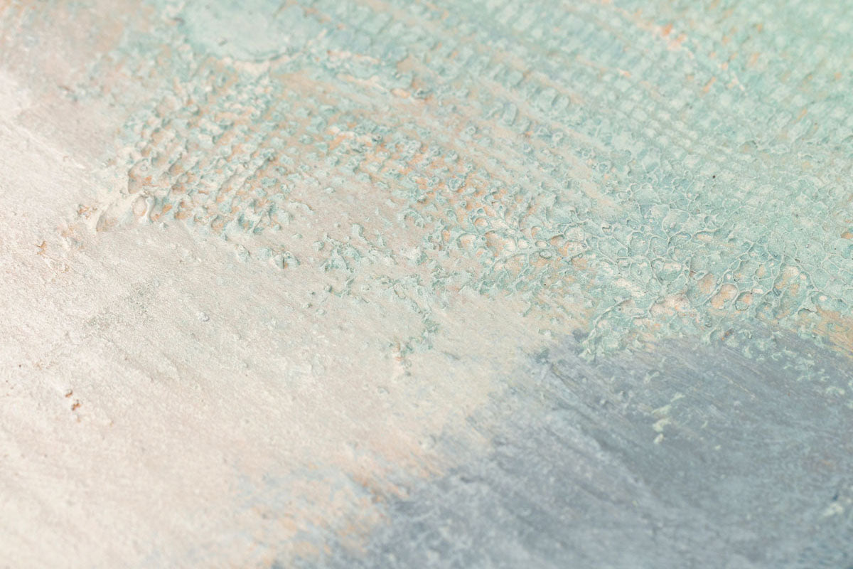 With a slick sheen, the Oil on Canvas 12 brings a highlight and radiance into the centre of your space. This is a beautiful oil on canvas, finished by artisans for a unique style. This is a superb minimalist design to suit a luxury boutique and a small hallway alike. The colours used make a feature that stands out with added texture from palette knife strokes. The addition of the slimline black frame creates a style that is contemporary and individual. Hang this in your office or waiting area for a sense of calm and relaxation. Its finish is the ultimate choice for an abstract artwork full of poise.