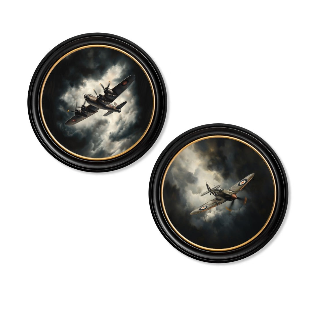 Set against dramatic, stormy skies, each print captures the power and spirit of flight with exceptional detail and cinematic depth. Available individually or as a complementary pair, the pieces make a striking statement whether displayed alone or together.