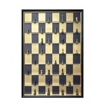 This distinctive piece features a bold chessboard design, brought to life by intricately placed chess pieces in striking gold and black tones. The dramatic contrast between the squares adds depth and sophistication, creating a stunning focal point in any room.