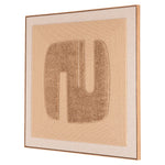 Set in a sleek wooden frame, this piece showcases an abstract composition made from layered linen, creating a tactile surface that plays with form and tone. Its warm golden hues introduce a touch of understated opulence, while the organic textures lend a modern yet natural feel.