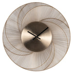 Crafted from gold-finished iron and MDF, this distinctive wall clock features a captivating spiral wire frame that catches the eye while adding depth and texture to your space. Its minimalist face and sleek black hands stand out beautifully against the radiant metallic backdrop, creating a look that feels both refined and dramatic.