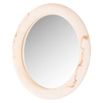 Framed in luxurious faux alabaster, its soft, rounded form is beautifully accentuated by integrated LED lighting that casts a warm, atmospheric glow around the mirror’s edge. Ideal for dressing areas, hallways or bathrooms, it combines the practicality of a mirror with the gentle ambiance of mood lighting. The subtle veining of the faux alabaster adds natural charm, while the built‑in light ensures both style and utility.