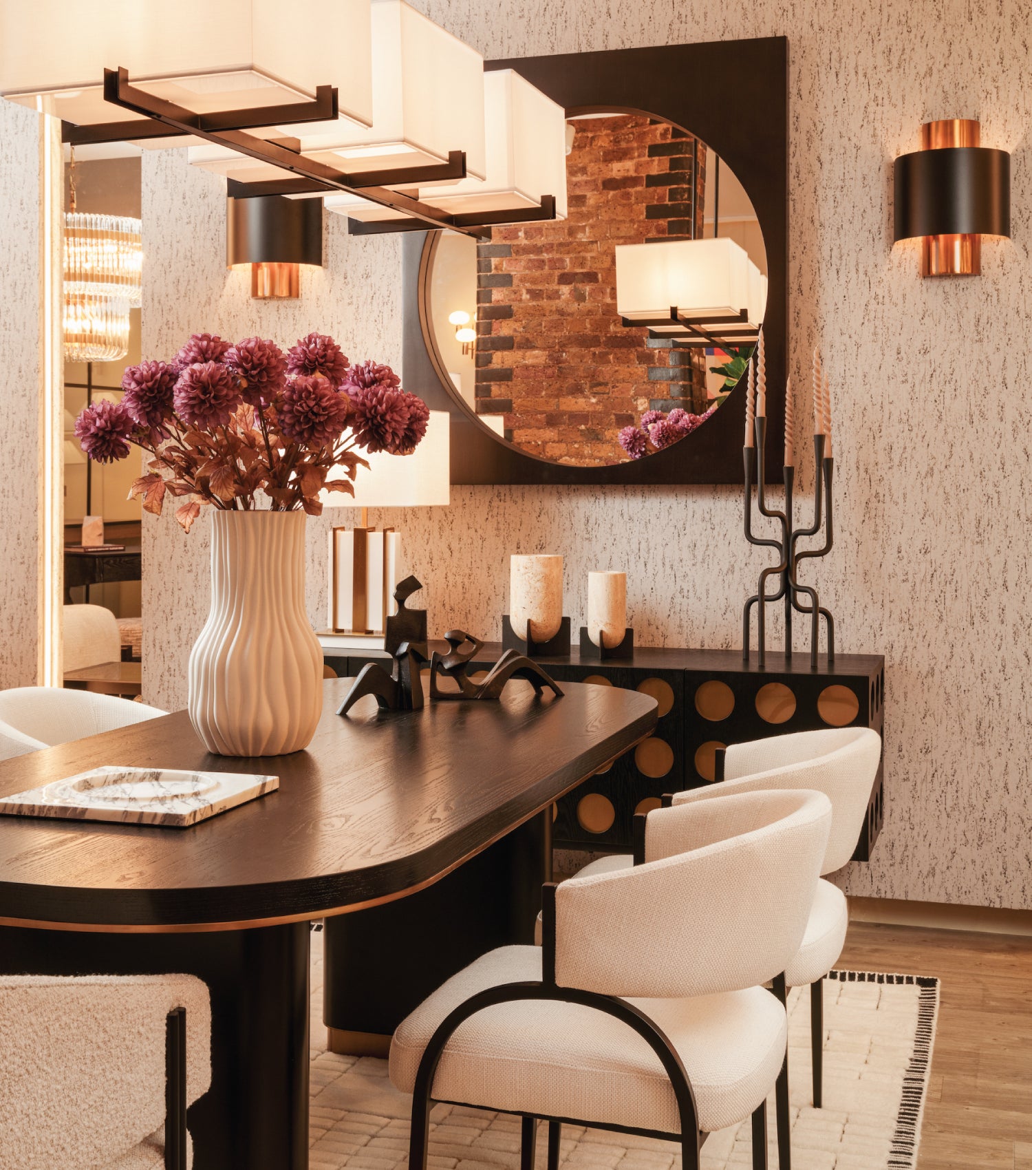 Explore plush sofas and accent armchairs, sculptural coffee and side tables, refined sideboards and cabinets, statement dining tables with co-ordinating chairs, elegant beds and bedside tables, versatile desks, plus striking lighting and accessories – each piece crafted to elevate modern interior design throughout your home.