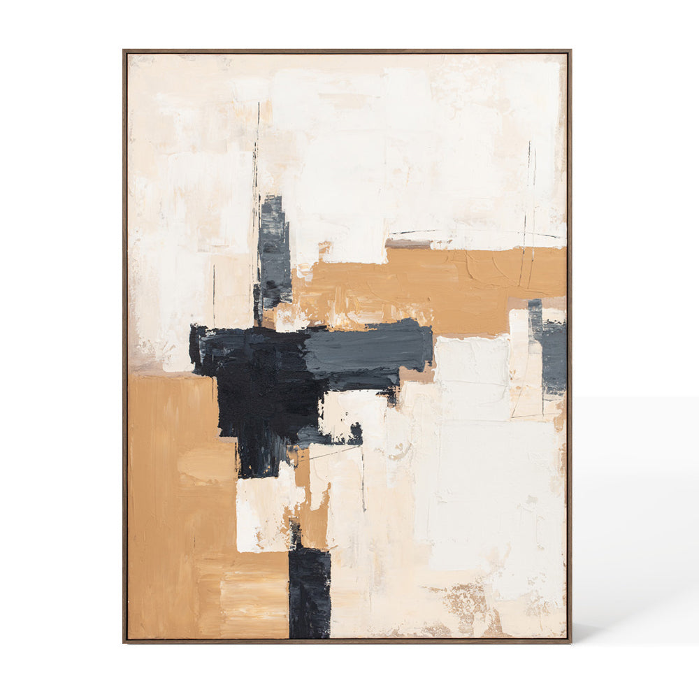 This captivating abstract piece features a dynamic interplay of light and dark neutral tones, creating a striking yet harmonious composition. Hand-finished with palette knife textures, the layered brushstrokes add depth and movement, making it a compelling focal point for any interior. Encased in a sleek wooden frame, it exudes contemporary elegance, effortlessly complementing both minimalist and bold décor styles.
