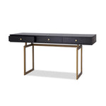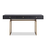 If you need extra working space for your home office and know that style does not have to be sacrificed for utility, then the Hamilton desk is for you. Boasting three spacious drawers and a generous tabletop working space, the black ash veneer woodwork is held in a stylish dark brass frame. Beneath the drawers is plenty of room for your feet and possibly other items, or keep the space uncluttered for a light and minimalist look. An extra design accent is offered by the metallic hand pulls.