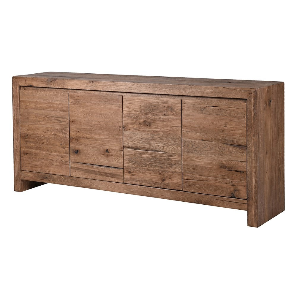 Crafted from recycled oak, each knot and imperfection tells a story, bringing a rich, authentic aesthetic to your space. The sideboard features four doors that open to reveal ample shelved storage, keeping your room tidy, while the spacious top provides an ideal surface for displaying ornaments, trinkets, and photographs.
