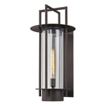 Secured between circular metal plates at the top and bottom, a clear, cylindrical shade houses a singular bulb to illuminate your space. Four sleek, angular rods extend from the base of the wall sconce, crossing over at the top for a stylish effect. Accentuating its traditional appeal is its lovely, bronze colour which adds a touch of understated class.
