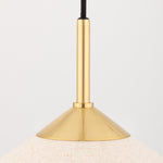 Its scalloped white linen shade diffuses light gracefully, revealing a hint of the bulb for a warm, ambient glow. Accented by aged brass, this pendant exudes vintage charm with a modern twist. Perfect for kitchens, dining rooms, or entryways, it serves as a stylish focal point that’s both functional and decorative.