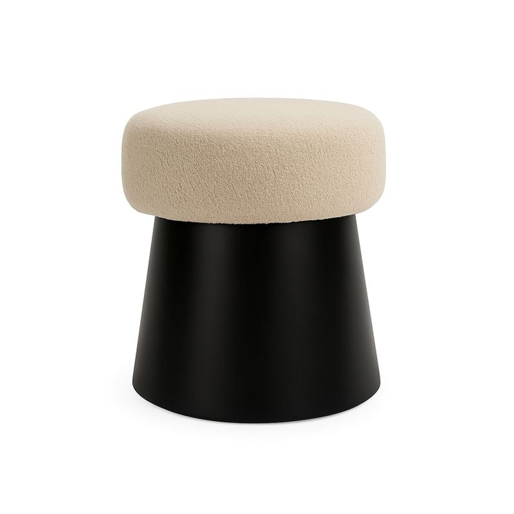 The focus of this piece is, without a doubt, its striking metal base. Conical in shape, it features a classy black finish. A plush, circular seat sits on top of the base, its Crib 5 Capela Sand upholstery providing a luxuriously smooth feel you are sure to love. The Cyrus stool is full of contemporary glamour and makes a lovely addition to any space, be it a bedroom or living room.