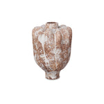 Crafted from ceramic in a raw white and brown finish, its tactile surface and organic shape evoke a hand-formed, natural aesthetic. The rough texture and irregular glaze lend a sense of age and authenticity, making each piece feel truly one of a kind.