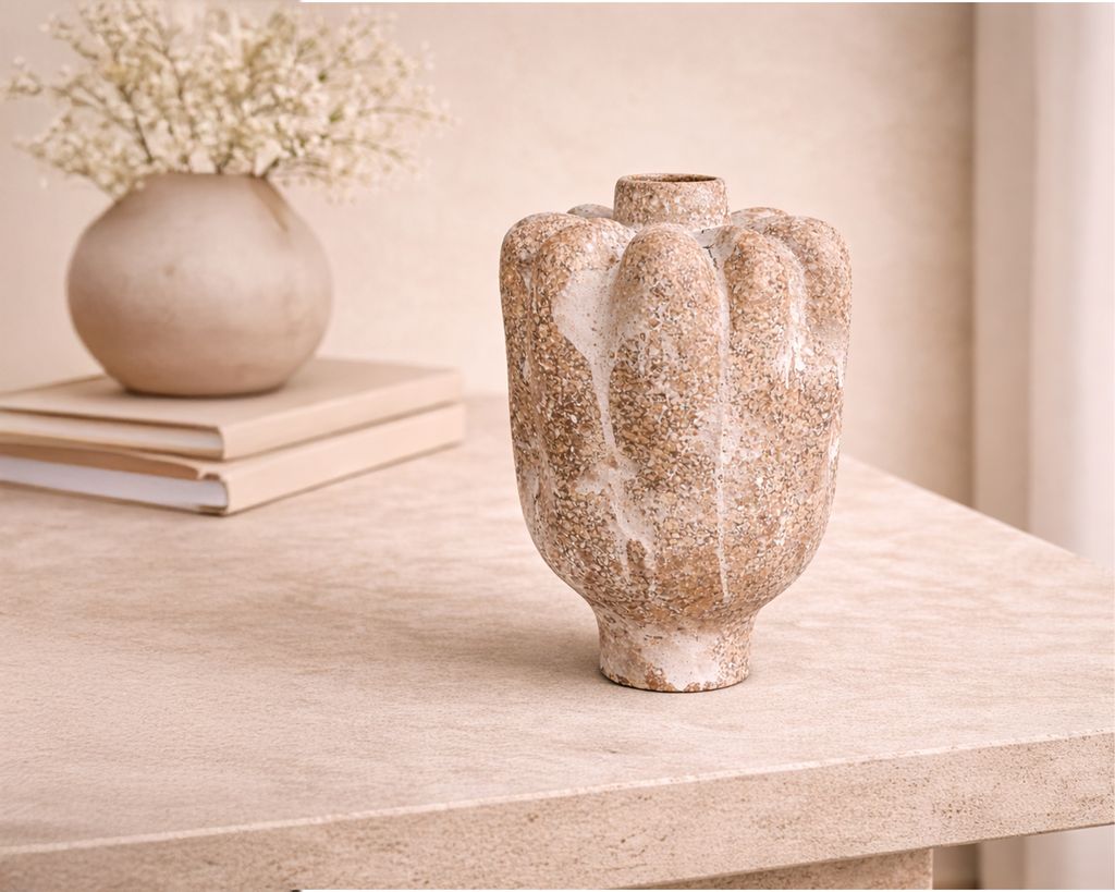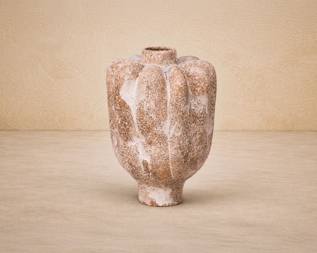 Ideal as a decorative standalone or filled with dried stems, the Sorello Vase adds warmth and character to minimalist or rustic-inspired spaces. A refined yet grounded accent that celebrates imperfection and artisanal craftsmanship.