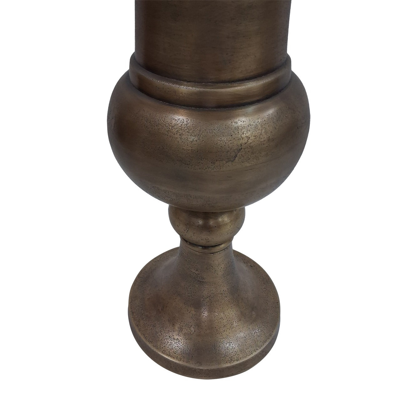 Crafted from aluminium and finished in beautifully aged gold, this tall, trumpet-shaped planter exudes timeless elegance. Its sculptural silhouette, with a flared top and rounded base, makes it perfect for showcasing statement plants or floral arrangements. The warm antique tones introduce depth and character, while the slender profile ensures it fits seamlessly into both spacious and compact interiors.