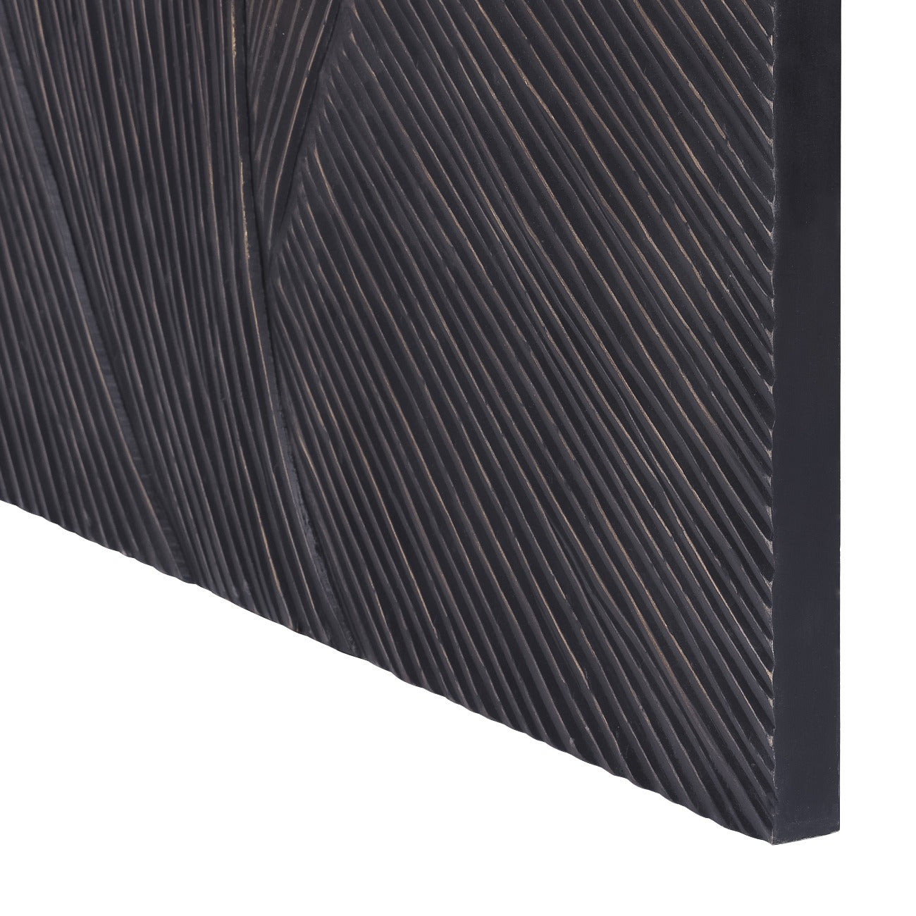 Crafted from engineered wood, it features a sophisticated black finish accented with subtle antique gold highlights that bring out the carved detailing and add depth and dimension. The broad, flowing lines evoke a sense of movement and fluidity, making it an instant focal point in any room.