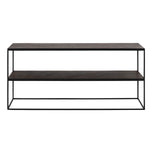 The perfect combination of wood and metal comes together with the Chisa Console Table. The two table lengths have been handcrafted from brown wood pieces in a chevron design. This unique finish gives your table depth within your space. The frame is black metal, adding to the classic dramatic finish. A wonderful piece to add dimension to your room. Use it in many ways, from a charging station to fresh cut flowers or for your favourite treasures.
