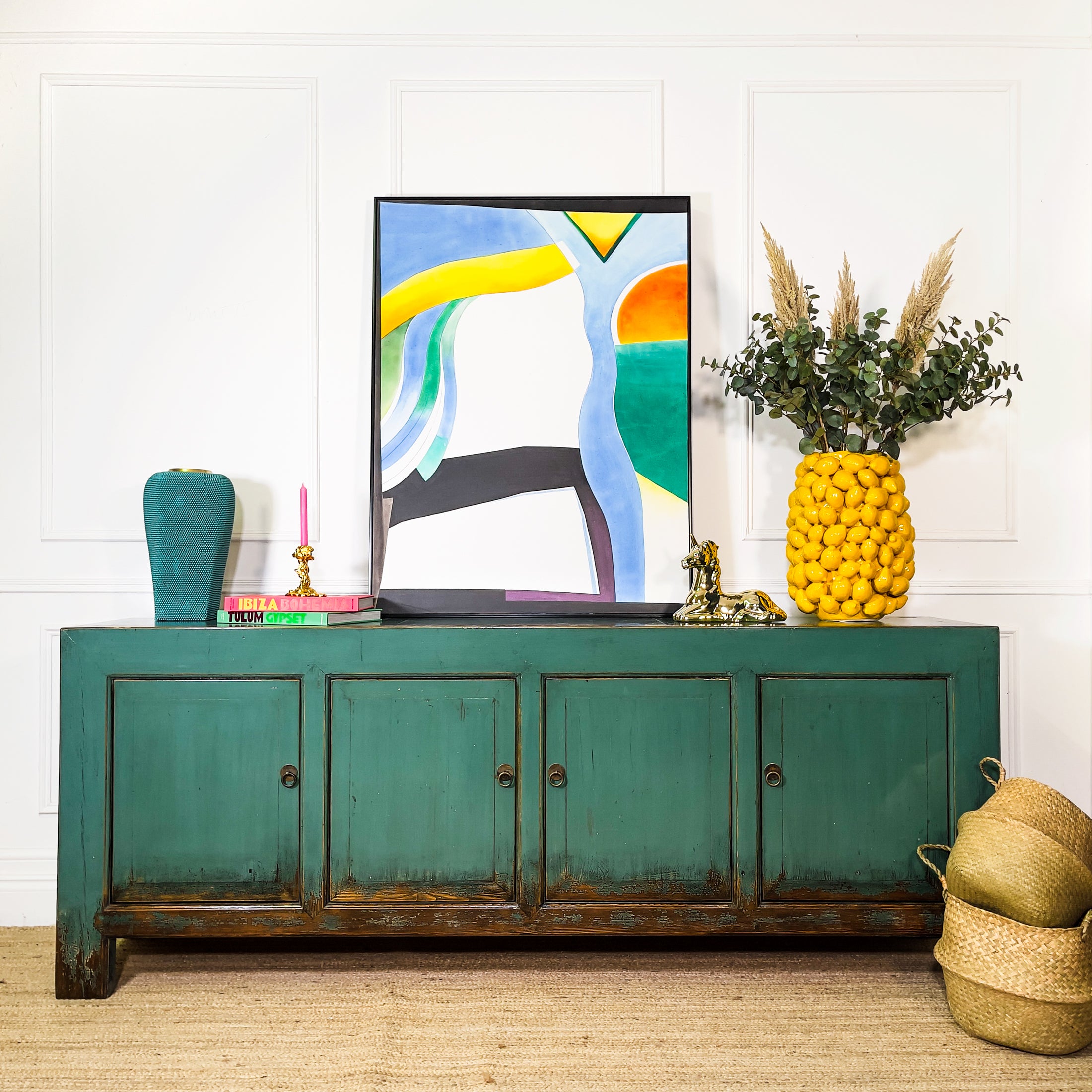 Extra Large Lingbao Four Door Turquoise Sideboard Cabinet