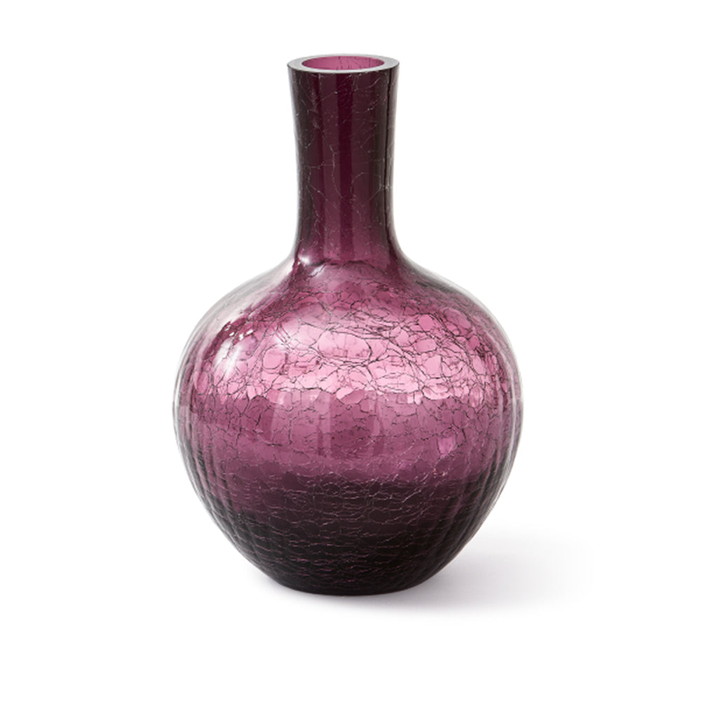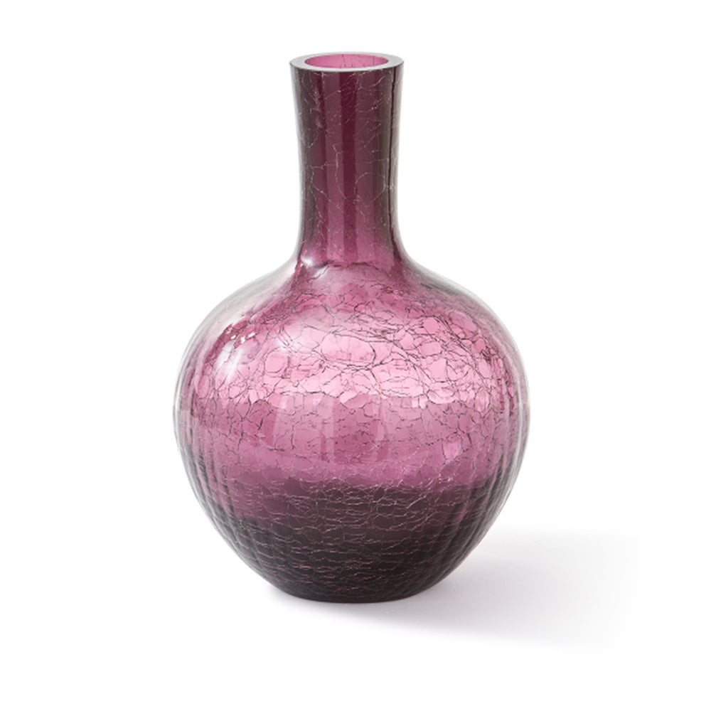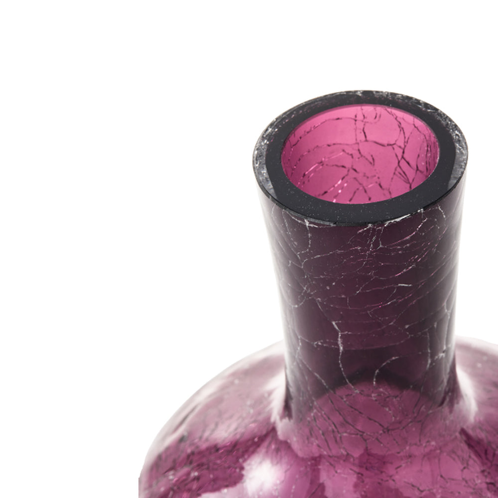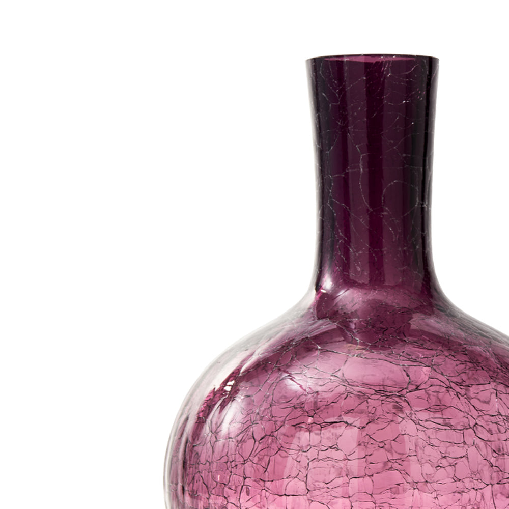 Expertly mouth-blown from sumptuous purple glass, each piece undergoes a unique ice-dipping process before baking to create the captivating crackled finish that allows it to stand out from the crowd. Hand-made and unique, these subtle fractures do not compromise the vase's robustness, promising a long-lasting addition to your space.